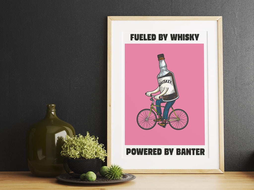 This bold and cheeky print celebrates Scotland’s unofficial national fuel — whisky — and the unstoppable energy that comes with a guid bit of banter. Whether you’re a dram devotee or just love a laugh, this design brings warmth, wit, and Scottish charm to your wall.