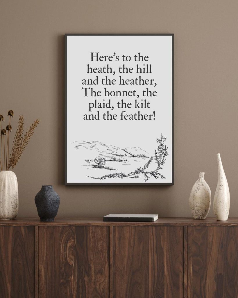 Perfect for those who love Scotland’s landscapes, culture, and traditions, this print makes a thoughtful gift or a statement piece for living rooms, hallways, studies, or social spaces.